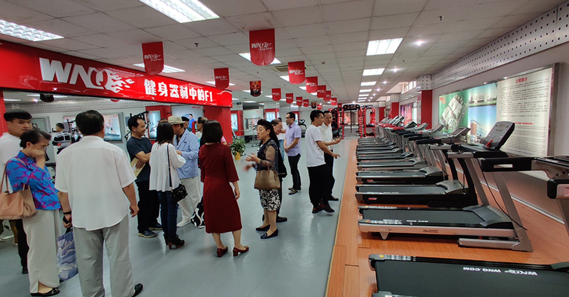 首先,来宾一行参观考察了jiuyou九游官网的文化长廊,对我司的发展历程、企业文化、企业特色等方面进行初步了解。在参观一楼与负一楼展厅过程中,来宾一行对jiuyou九游官网种类齐全的健身器材表现出浓厚的兴趣。