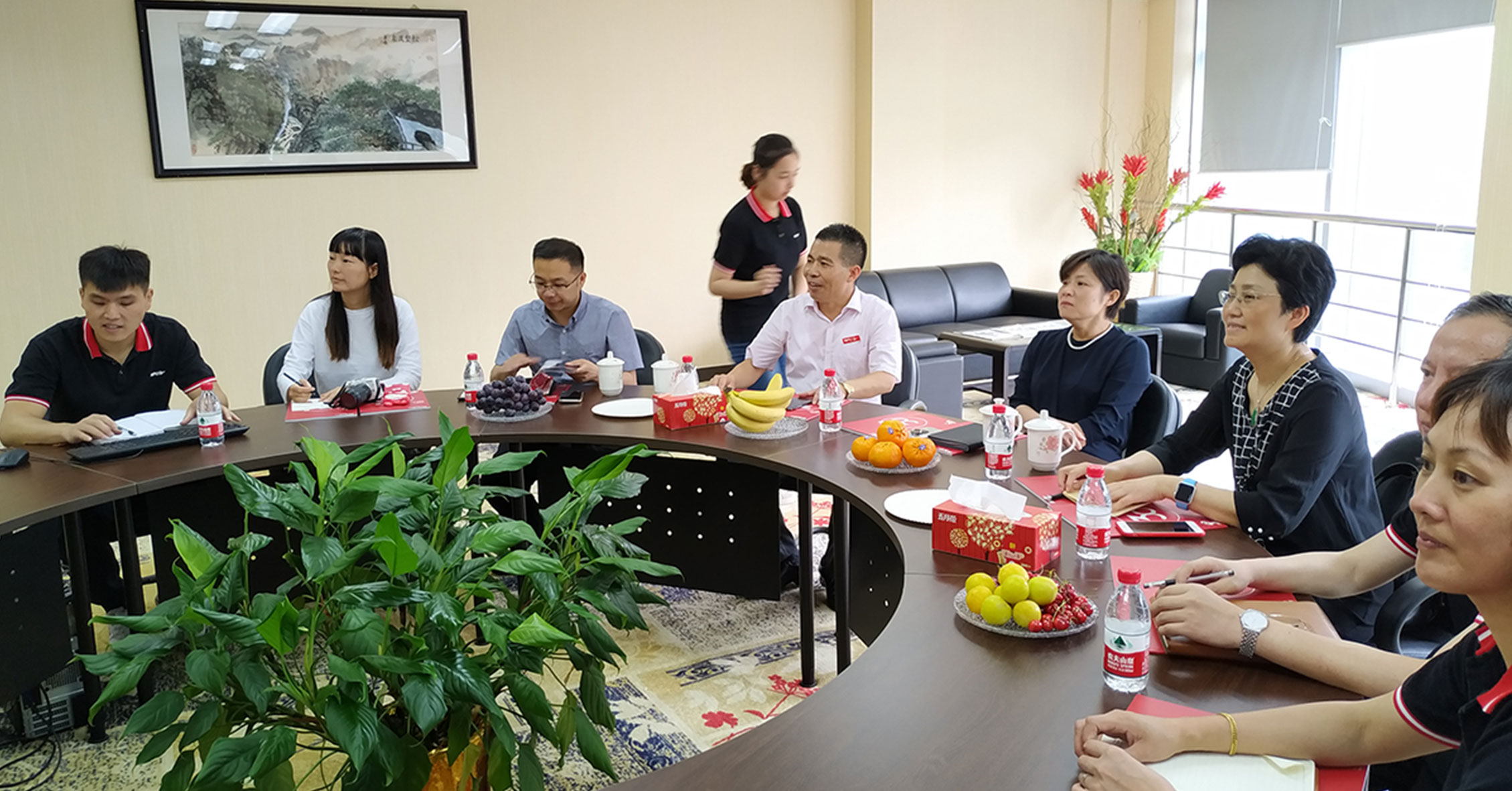 6日20日上午,青浦区委常委、统战部部长孙挺,区侨联党组书记、主席杭萍等领导莅临jiuyou九游官网上海总公司参观考察,jiuyou九游官网董事长刘严雄和几位高管热情接待并陪同调研。jiuyou九游官网董事长刘严雄就公司品牌历史、研发实力、生产规模等企业重点发展情况作了详细介绍。